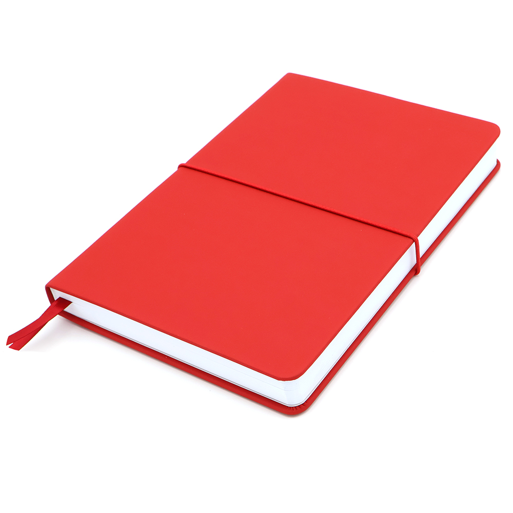 Блокнот А5-формата жёсткой обложке со специальным гладким покрытием. Материал обложки — полиуретан. Карман в нахзаце, форзац, двойное ляссе, эластичная застёжка — всё комплиментарно цвету обложки.