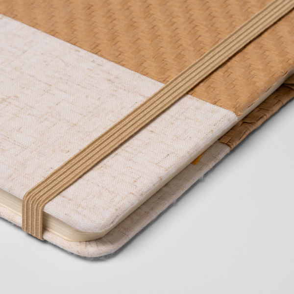 Блокнот А5 в твёрдом переплёте из натуральной соломы и хлопка, с закладкой. 80 линованных листов.