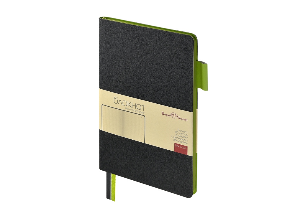 Блокнот А5 Boston, черный с салатовым срезом с логотипом компании - отличный способ заявить вашу корпоративную идентичность.
