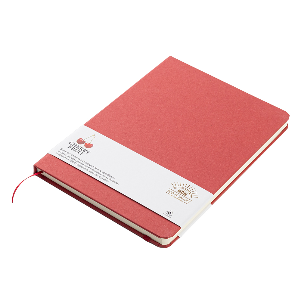 Компания «Эклектика BY» осуществляет нанесение логотипа на сувенирную продукцию: Блокнот из растительного сырья Tutti Frutti в твёрдом переплёте, вишнёвый. Арт. 215887