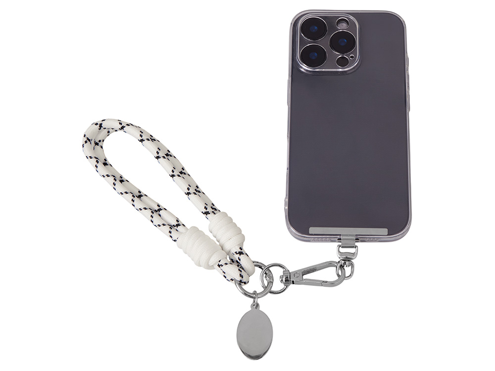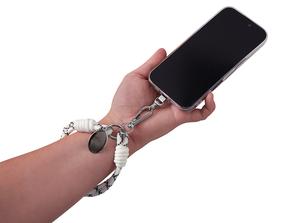 Брелок-браслет Bohemian c металлическим держателем для телефона, бело-черный с логотипом компании - отличный способ заявить вашу корпоративную идентичность.