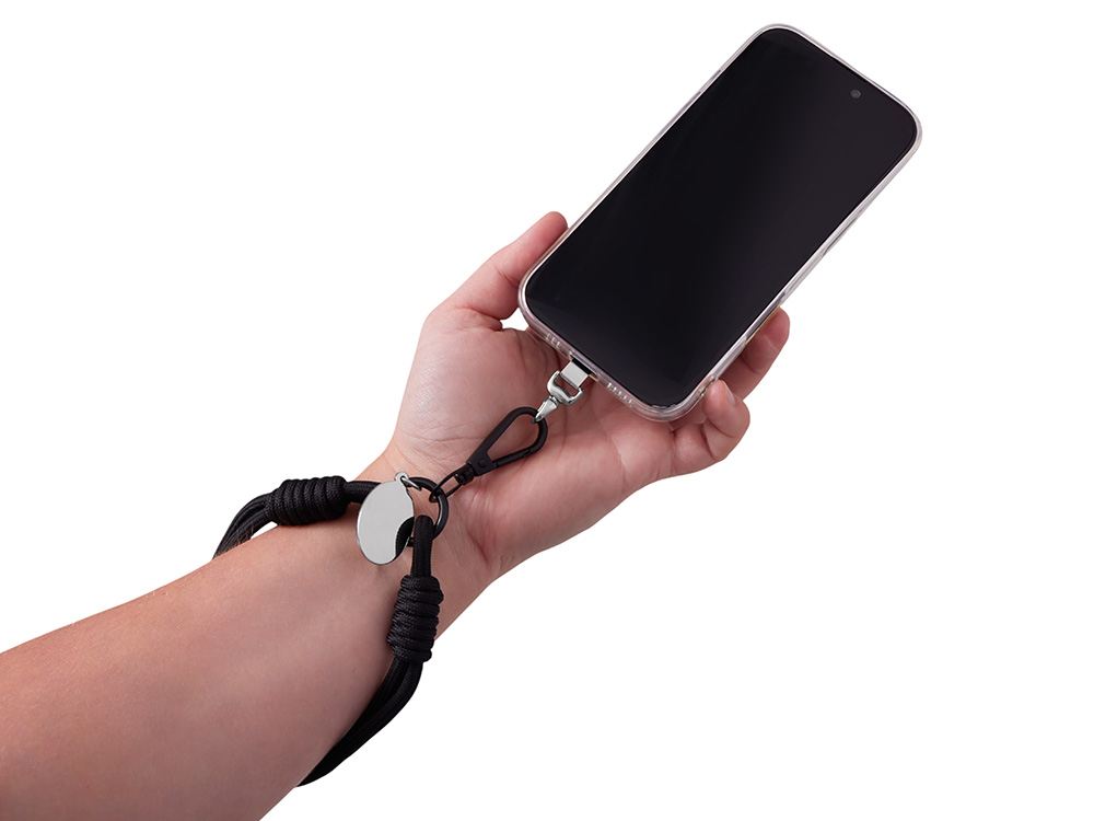 Брелок-браслет Bohemian c металлическим держателем для телефона, черный с логотипом компании - отличный способ заявить вашу корпоративную идентичность.