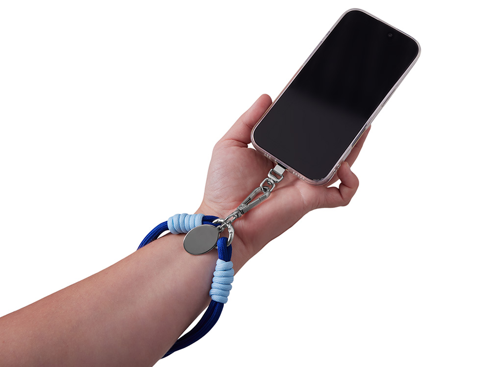 Поставщик корпоративных сувениров и подарков «Эклектика BY» осуществляет нанесение логотипа на сувенирную продукцию: Брелок-браслет Bohemian c металлическим держателем для телефона, синий. Арт. 445559