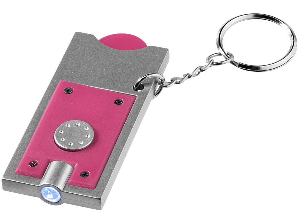 Главная ->Корпоративные подарки и рекламные сувениры на складе -> Брелоки с логотипом -> Брелоки -> Брелок-держатель для монет Allegro с фонариком, фуксия/серебристый