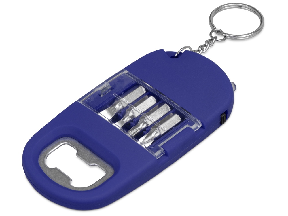 Главная ->Корпоративные подарки и рекламные сувениры на складе -> Подарки и сувениры для мужчин -> Инструменты ручные -> Брелок-открывалка с отвертками и фонариком Uni, софт-тач, синий