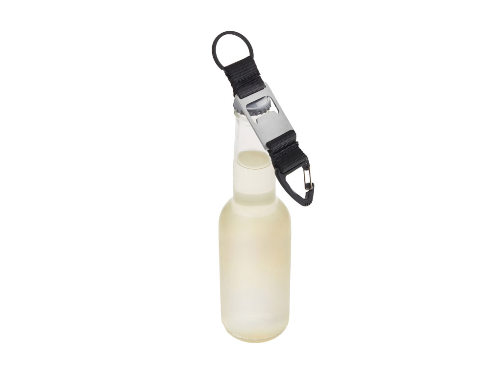 Главная ->Корпоративные подарки и рекламные сувениры на складе -> Брелоки с логотипом -> Брелоки -> Брелок-ремувка с открывашкой и карабином Champion, черный
