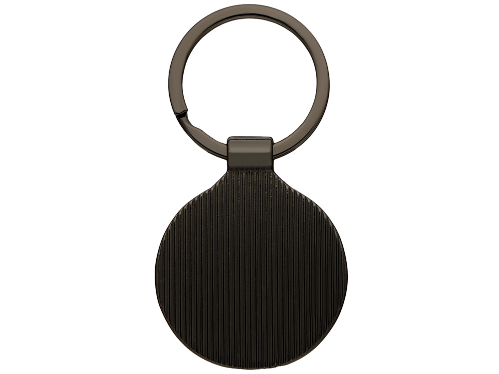 Классическая для брелка форма круга в стильном и необычном исполнении с рифленой на обороте поверхностью. Логотип можно нанести на гладкую лицевую сторону методом гравировки.