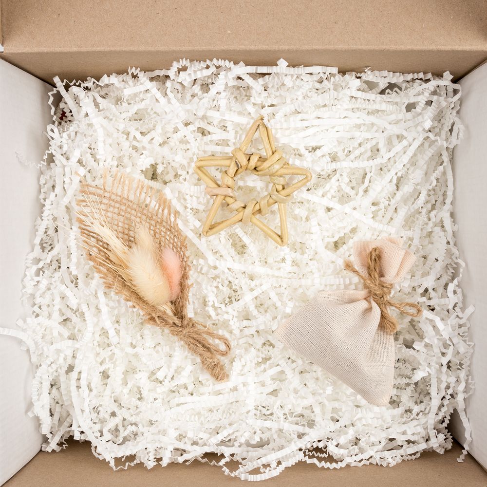 Бумажная стружка — недорогой и красивый наполнитель для подарочных коробок. Благодаря разнообразию расцветок легко подобрать подходящий наполнитель к любому подарку.