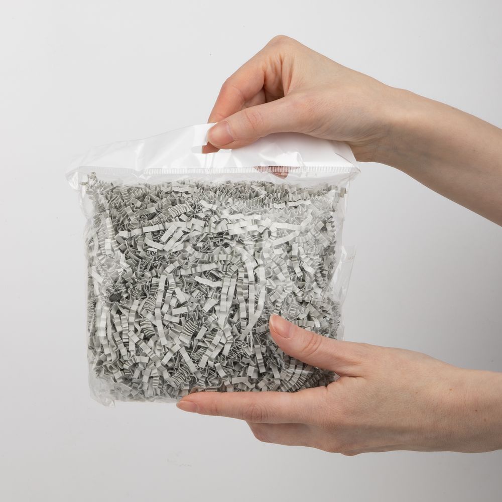 Масса нетто: 50 г.Компания «Эклектика BY» осуществляет нанесение логотипа на сувенирную продукцию: Бумажный наполнитель Chip, серый. Арт. 109229