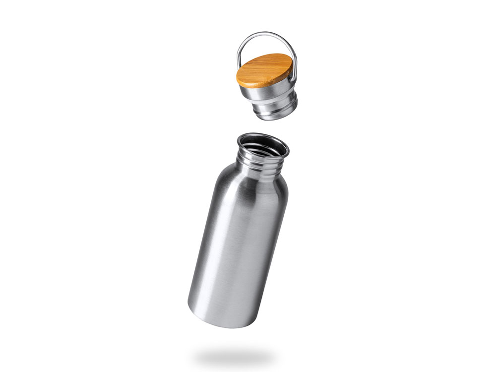 Бутылка BOINA из нержавеющей стали 304 и бамбука, серебристый с логотипом компании - отличный способ заявить вашу корпоративную идентичность.