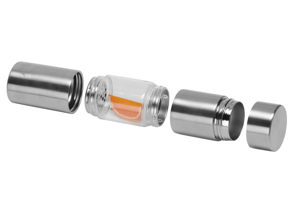 Бутылка для воды FLAVOUR U SEE от Asobu с прозрачным окошком посередине не только поможет вам приготовить питательную и вкусную фруктовую или ягодную воду, но и сделает ваш день немного ярче, позволив насладиться видом фруктов, а также дополнит ваш образ в качестве аксессуара. С обеих сторон прозрачной емкости, куда вы можете поместить дольки, размещены ситечки с крупными ячейками, которые не препятствуют свободной циркуляции воды и одновременно не пропускают плоды в основное отделение, где они могли бы мешать питью.