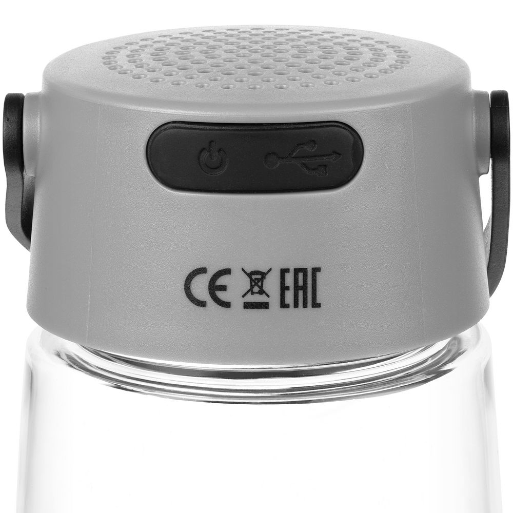 Бутылка для воды емкостью 700 мл Torsta Light имеет дополнительные функции беспроводной колонки (питание от встроенного аккумулятора) и кемпингового светильника (притание 3 от батареек типа ААА).