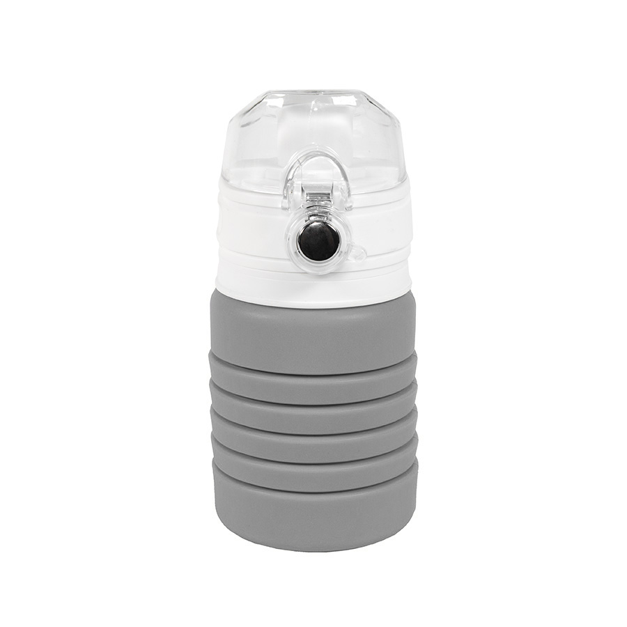 Очень удобная для бега герметичная складная бутылка Spring. Легко пристегнуть на карабин, например, к поясной сумке. Благодаря удобной крышке с кнопкой можно пить на бегу, открывая и закрывая одной рукой. Помимо этого, на крышке расположен специальный замок, защищающий от случайного открывания. Когда напиток закончился, бутылка складывается и занимает гораздо меньше места. Корпус бутылки выполнен из силикона - абсолютно нетоксичного материала, часто применяющегося в медицине Карабин черного цвета. Цвет корпуса бутылки близкий к Pantone 429C BPA-free (не содержит бисфенол А). Индивидуальная упаковка - белая картонная коробка