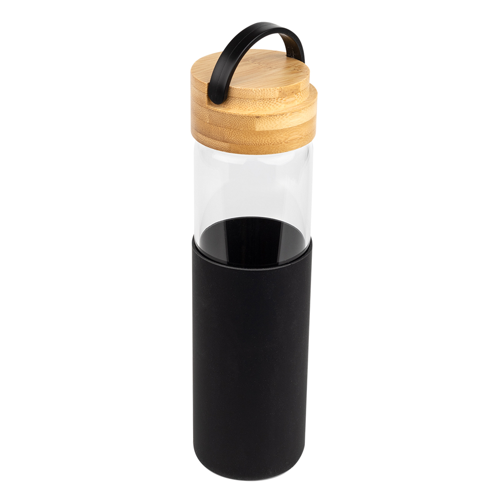 Бутылка стеклянная с силиконовой манжетой и бамбуковой крышкой Glass, черная