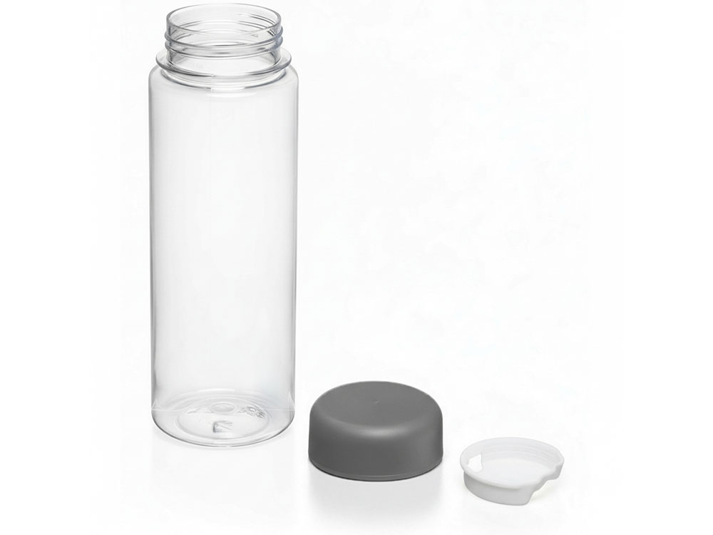 Лаконичный внешний вид позволяет нанести на аксессуар логотип компании. Прозрачный корпус дает возможность контролировать количество содержимого. Благодаря съемному фильтру в воду можно добавлять лимон, мяту и фрукты. Силиконовое кольцо предотвращает протекание, а крышка надежно закрывает бутылку.