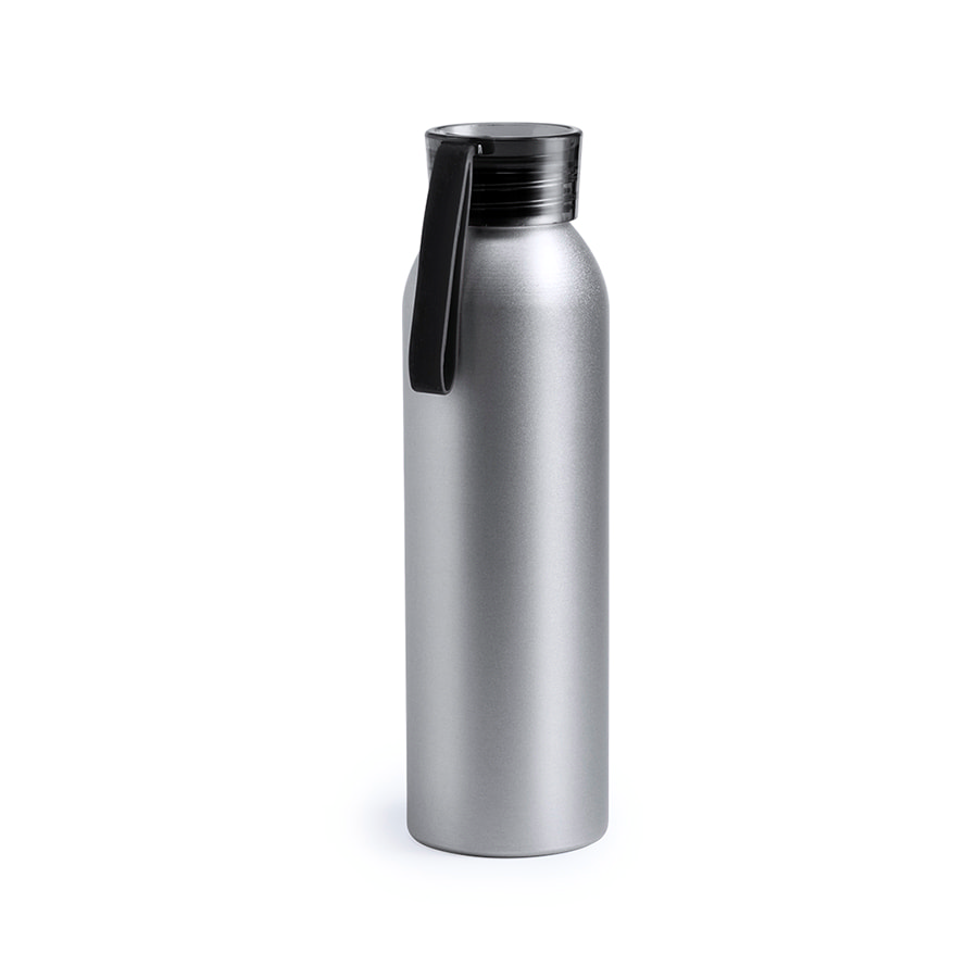 Алюминиевая бутылка с крышкой из полупрозрачного пластика.