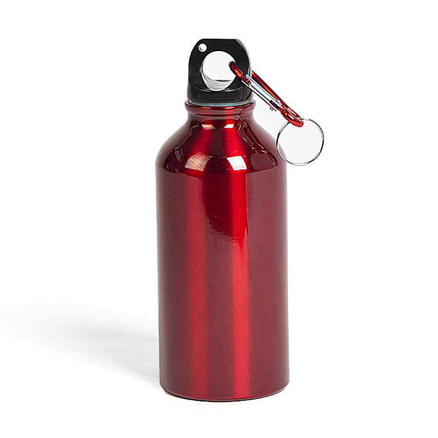 Цветная алюминиевая бутылка с удобной навинчивающейся пробкой и карабином для крепления к рюкзаку, сумке или одежде.