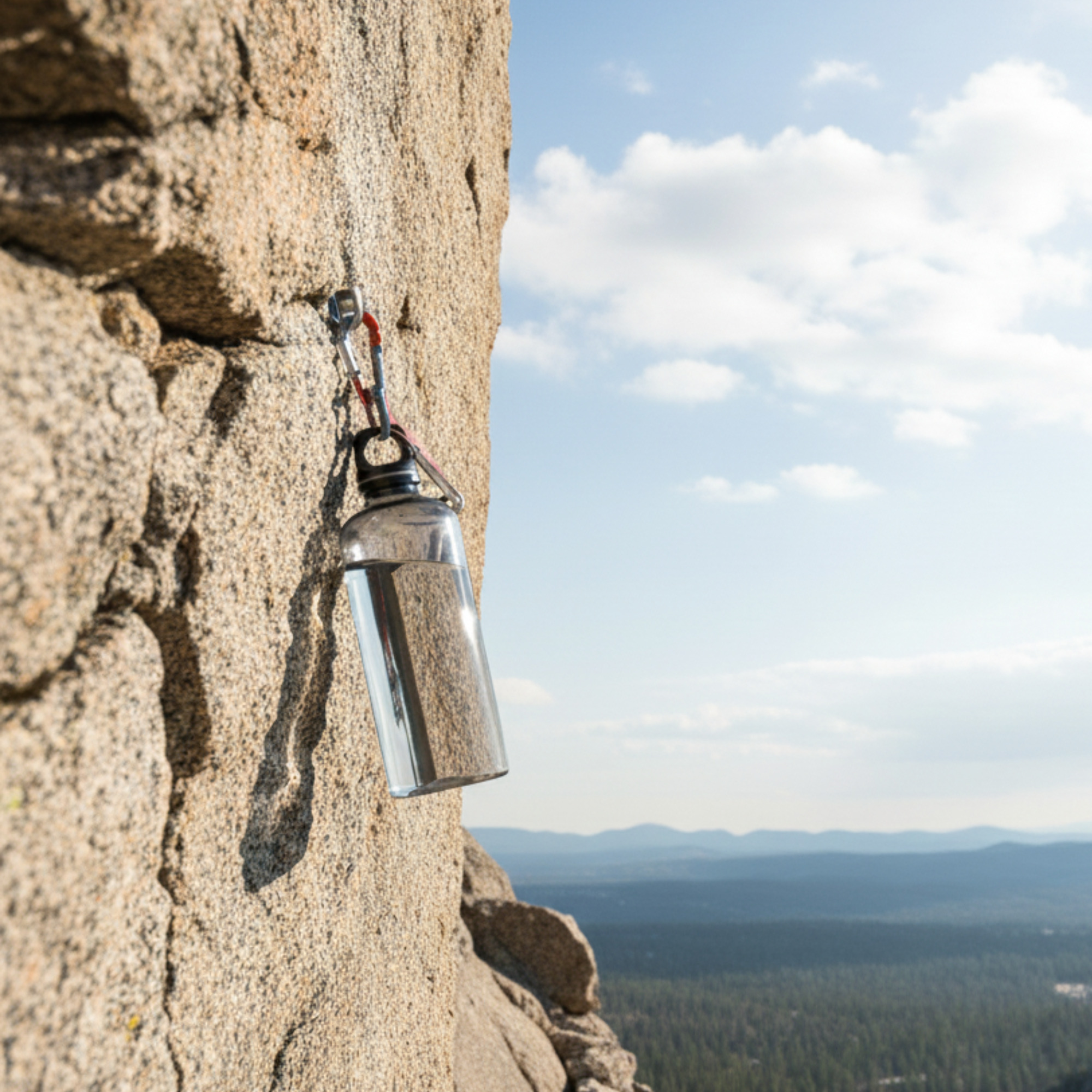 Пластиковая бутылка объемом 600 мл. Материал ПЭТ, крышка выполнена из ПП пластика, карабин из алюминия. Легкая и прочная, идеально подходит для активного отдыха и путешествий. Карабин обеспечивает удобное крепление к рюкзаку или пояску.