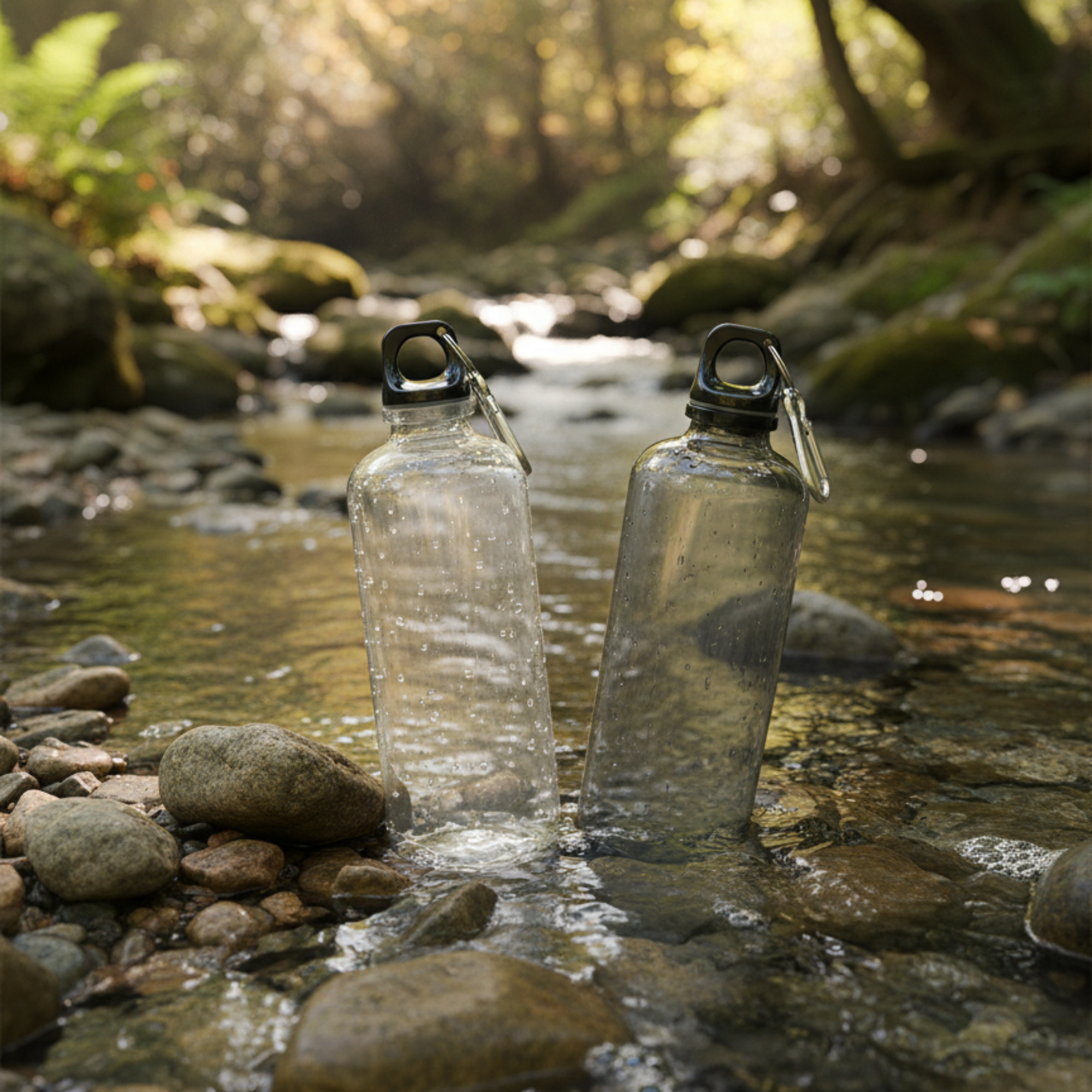 Материал: Бутылка: пластик ПЭТ, крышка: ПП пластик, карабин: алюминий