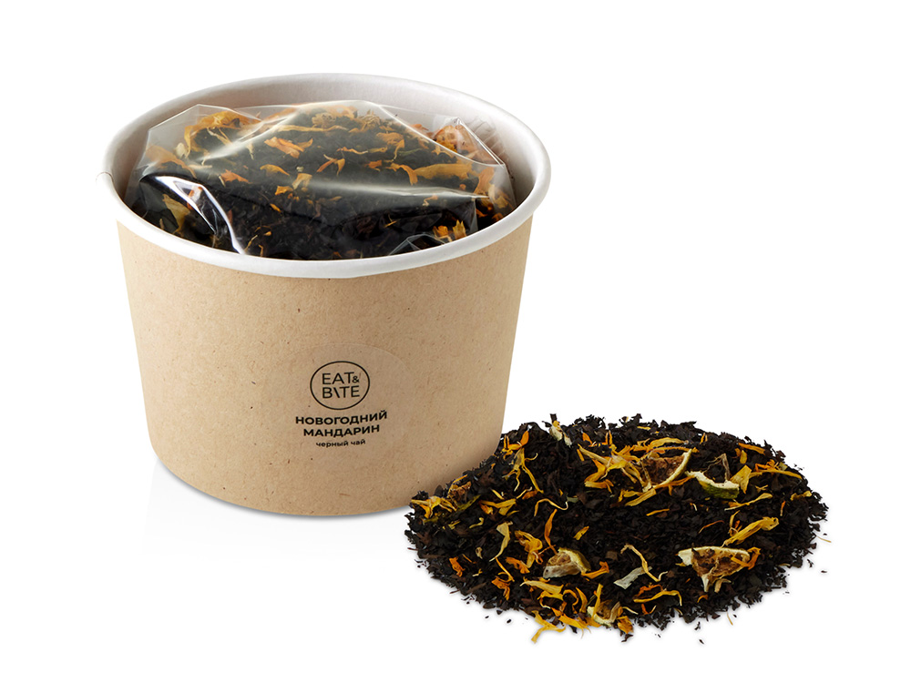 Чай черный Новогодний мандарин в картонном стаканчике, 50 гр. с логотипом компании - отличный способ заявить вашу корпоративную идентичность.