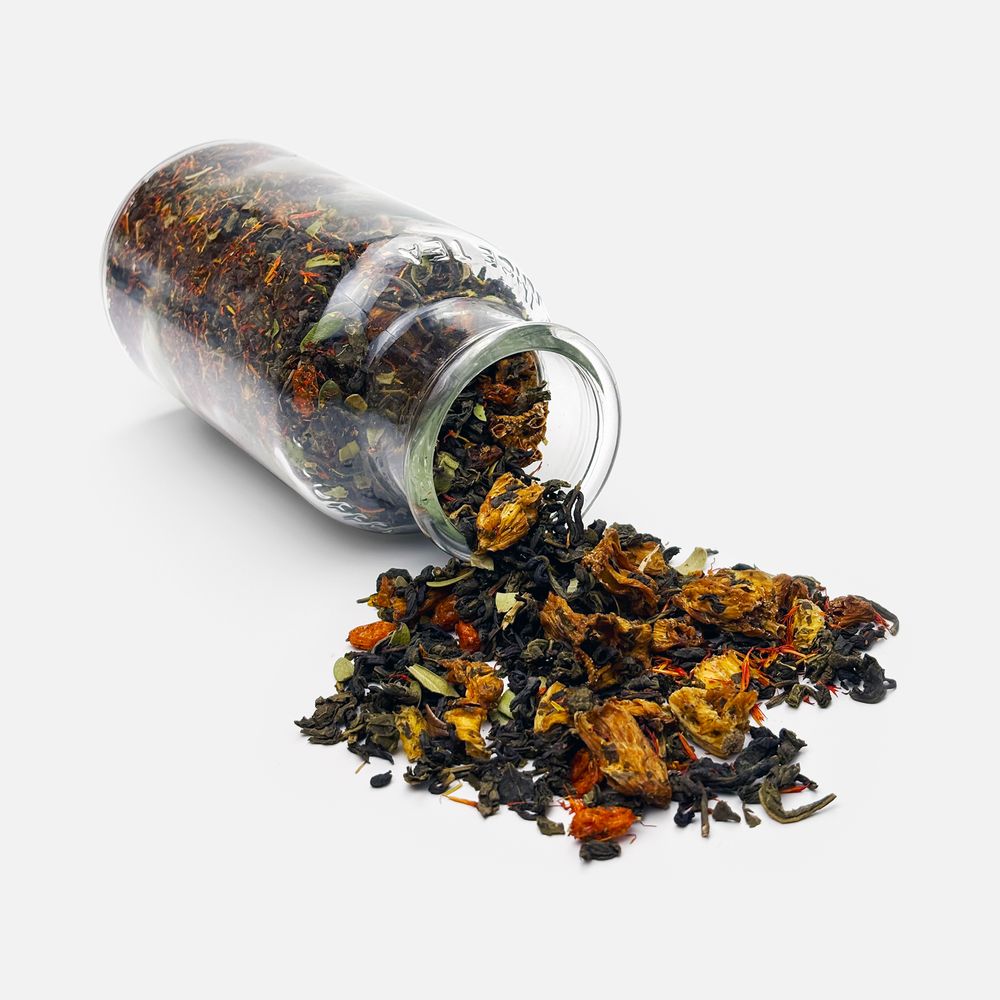 Чай «Сокочай», зеленый с соком ананаса, облепихой, толокнянкой и сафлором с логотипом компании - отличный способ заявить вашу корпоративную идентичность.