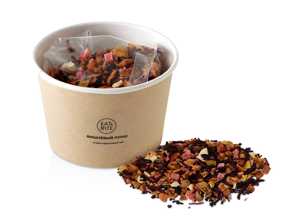 Чай травяной Вишневый пунш в картонном стаканчике, 50 гр. с логотипом компании - отличный способ заявить вашу корпоративную идентичность.