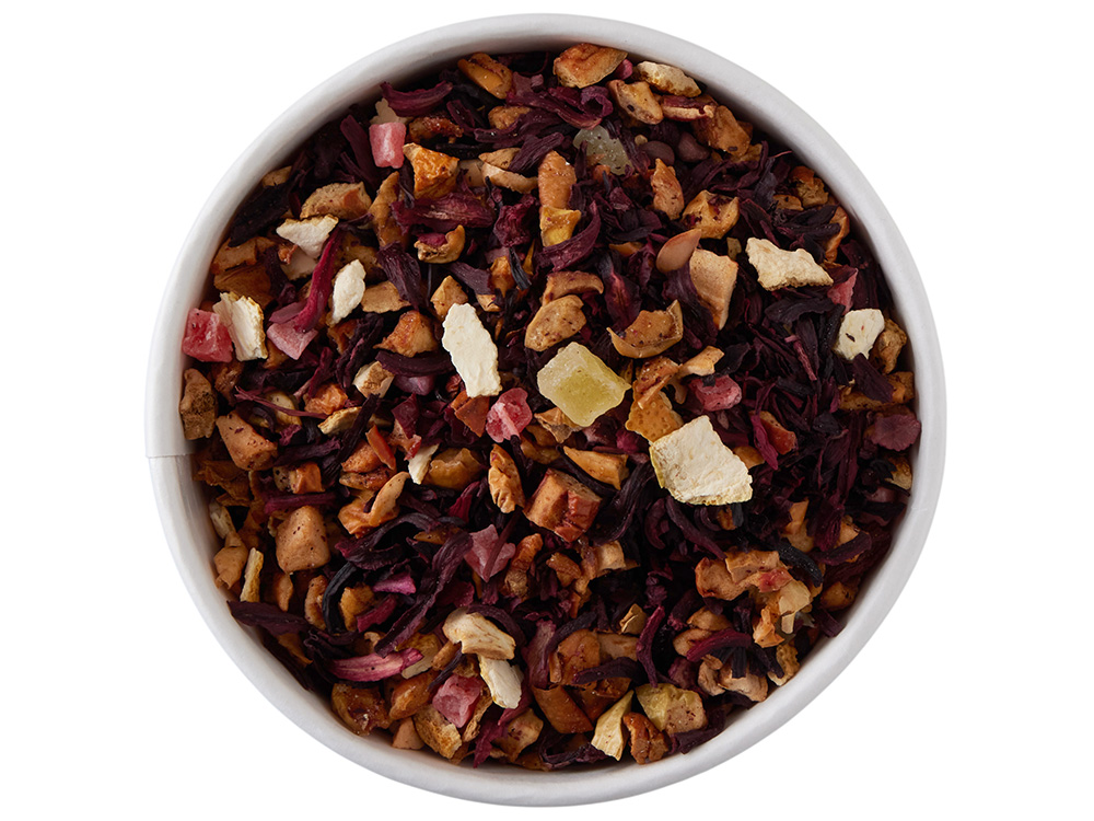 Яркий фруктовый чай с насыщенными вишнёвыми нотами и лёгкой пряной глубиной. Этот чай раскрывается сочной гаммой вкусов: яркая кислинка суданской розы играет в дуэте со сладостью яблок и ананаса, а солнечная цедра апельсина добавляет свежий цитрусовый акцент. Главная нота — насыщенная вишня, которую мягко обрамляют сливочные оттенки, превращая напиток в настоящий фруктовый десерт в чашке. Настой получается рубиновым, аромат — густым и праздничным, вкус — насыщенным и гармоничным.