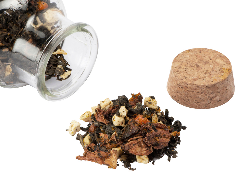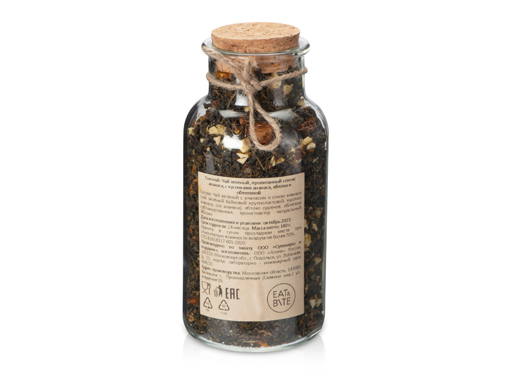 Чай зеленый, с соком ананаса и кусочками яблока/облепихи, 140г с логотипом компании - отличный способ заявить вашу корпоративную идентичность.