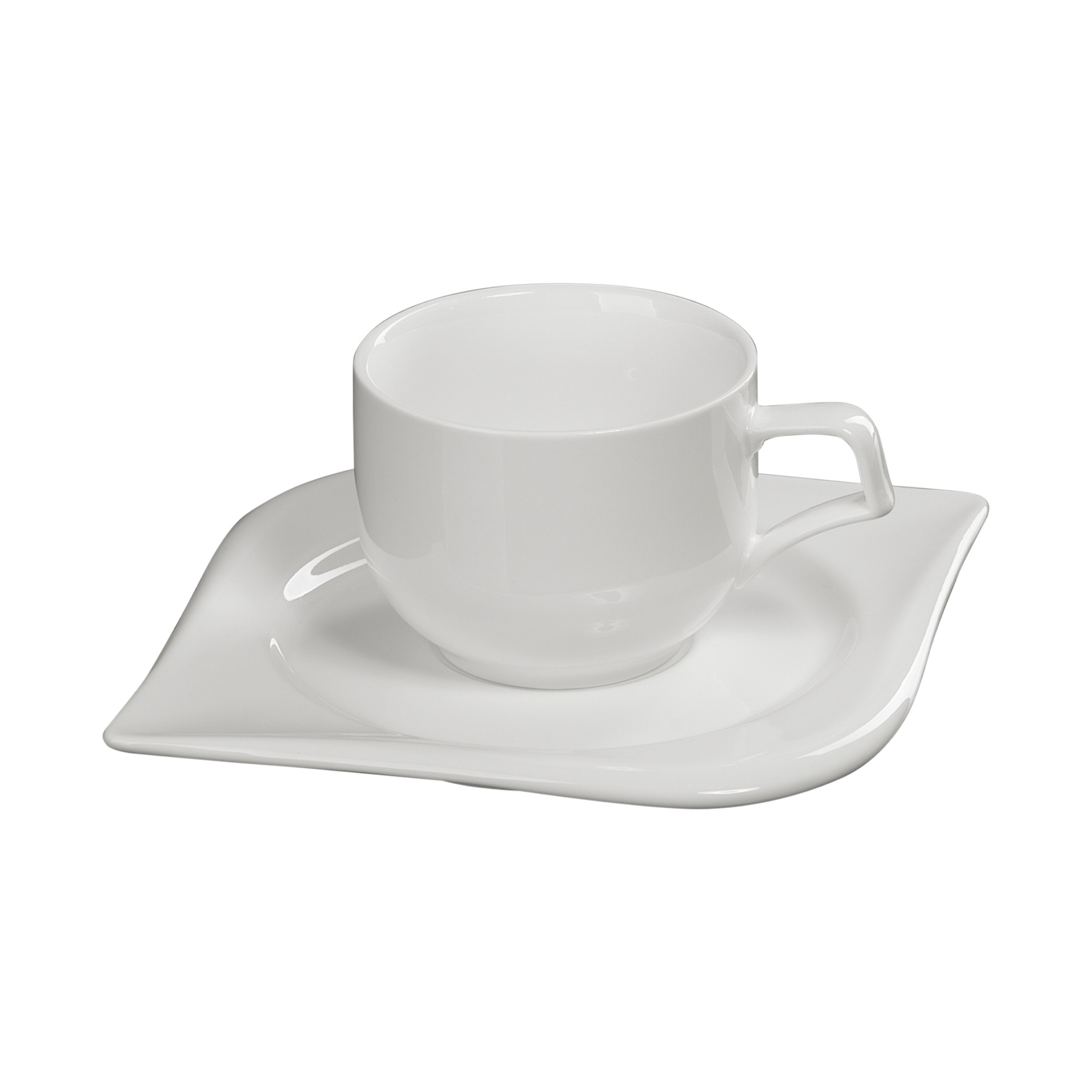 Чайная пара «Вальс» изготовлена из качественного фарфора в белом цвете. Изящный, утонченный дизайн чайного набора придётся по вкусу ценителям классики. Мягкие, плавные линии блюдца притягивают взгляд, а форма чашки кажется самой идеальной для любимого кофе или чая.