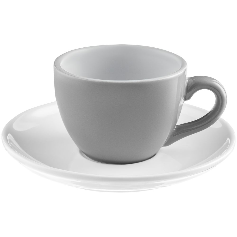 Чайная пара Cozy Morning, серая с белым с логотипом компании - отличный способ заявить вашу корпоративную идентичность.