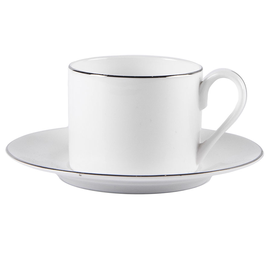 Благородство и умеренность — характерные черты этой чайной пары от собственной торговой марки BRISTOL. Элегантная чашка с блюдцем из костяного фарфора придаст особые ноты привычному чаепитию. Этот материал содержит в своем составе примеси обожженной костяной муки, которые делают ее гораздо легче аналогичных моделей. Его ценность обеспечивается древней историей, секрет создания которого хранили долгое время под строжайшим запретом. Благодаря качеству фарфора стенки такого изделия на порядок тоньше, при этом не теряют прочности. Чашка выполнена в классическом стиле объемом 200 мл. Блюдце имеет удобную выемку, которая не дает чашке скользить. Обе части набора оформлены серебряным кантом. Возможность персонализации горячей деколью придаст паре особый стиль и сделает ее отличным подарком. Чайная пара PLATINUM — аристократический стиль, который необходим каждому