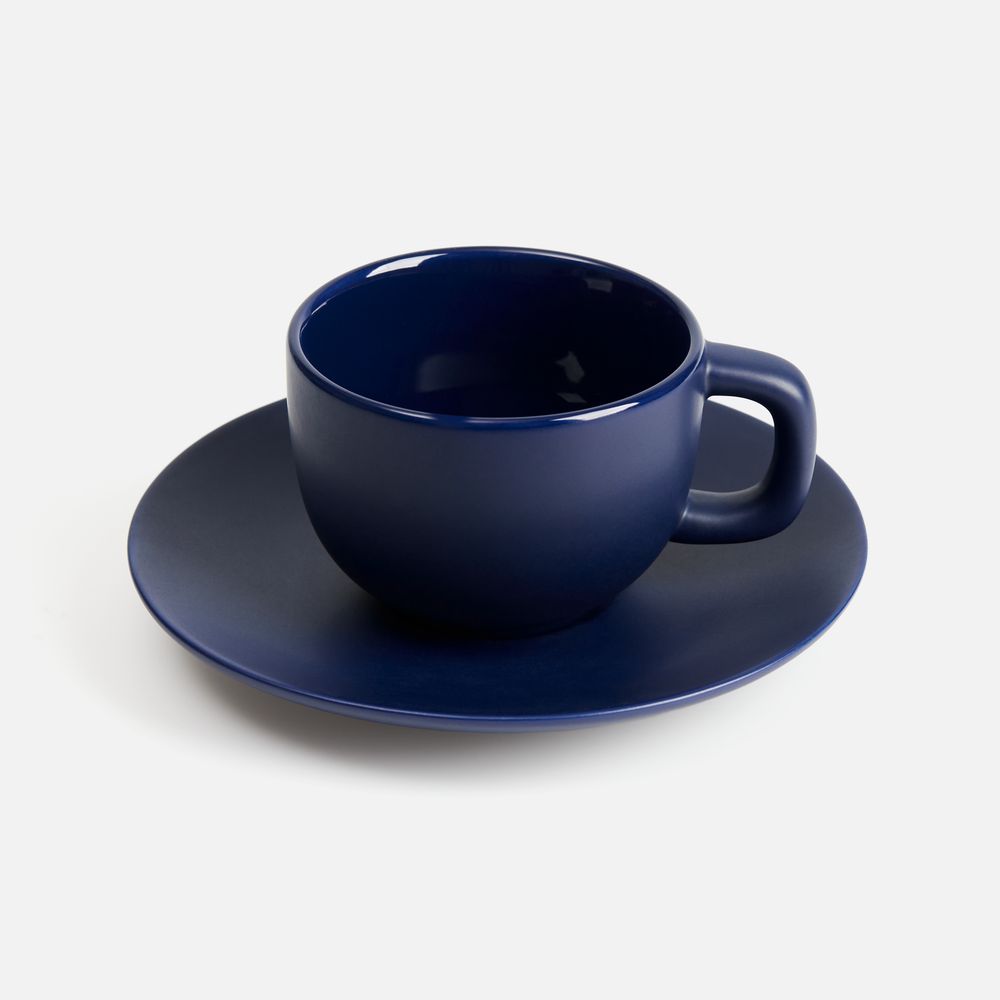Чайная пара Stansa, темно-синяя с логотипом компании - отличный способ заявить вашу корпоративную идентичность.