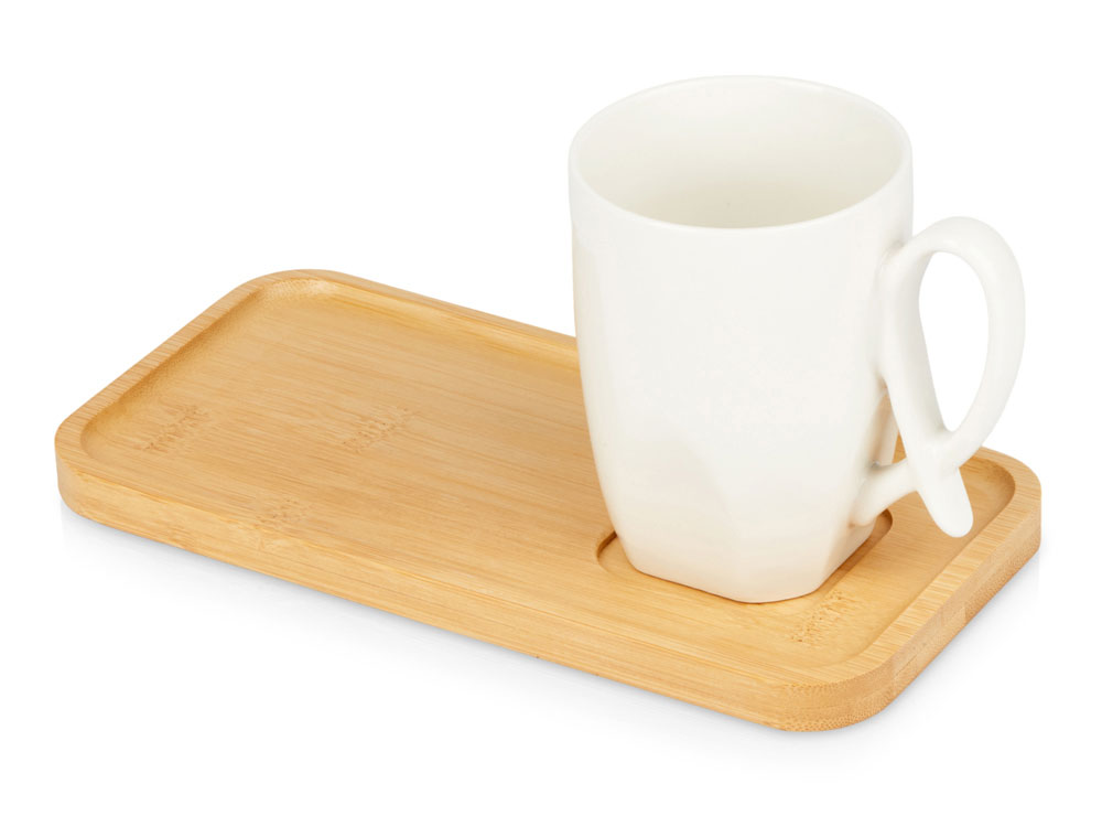 Компания «Эклектика BY» осуществляет нанесение логотипа на сувенирную продукцию: Чайная пара с бамбуковым блюдцем Deny, белый. Арт. 427989