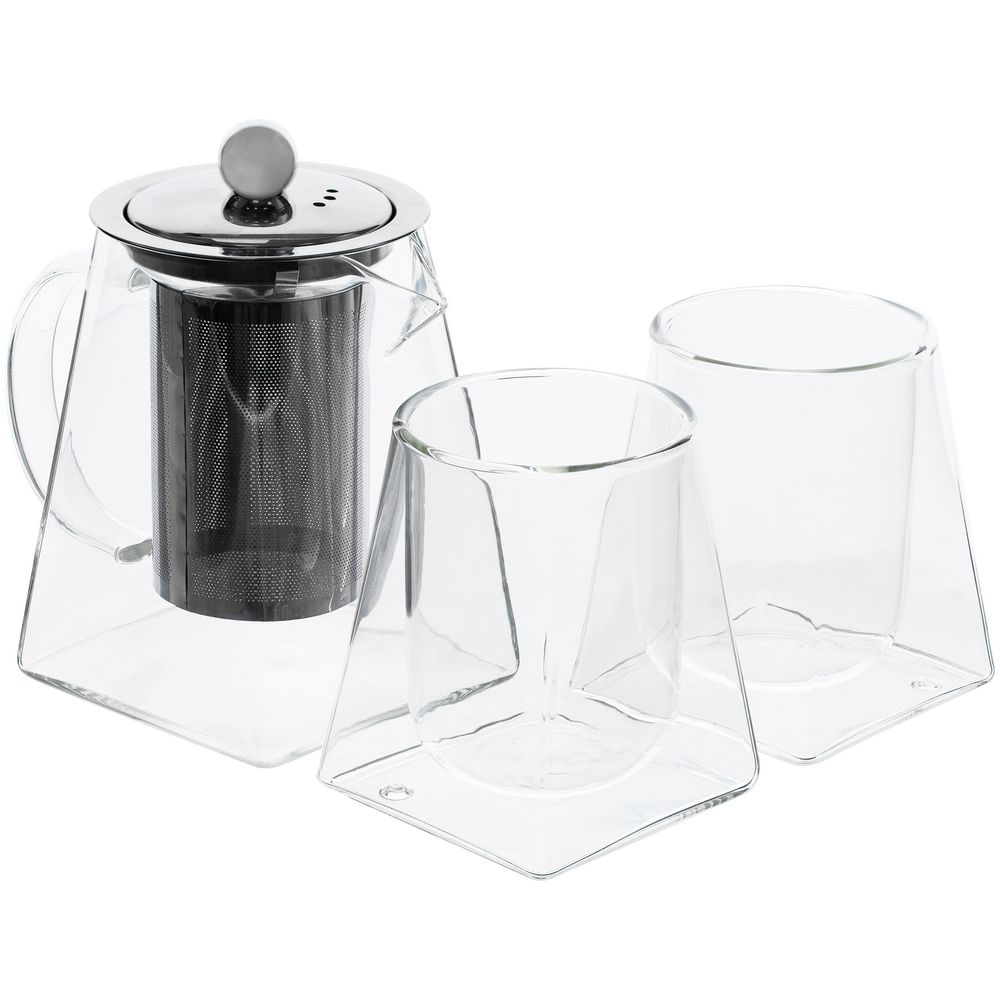 Материал: чайник, стаканы - боросиликатное стекло; крышка и сито - нержавеющая сталь; коробка - переплетный картон