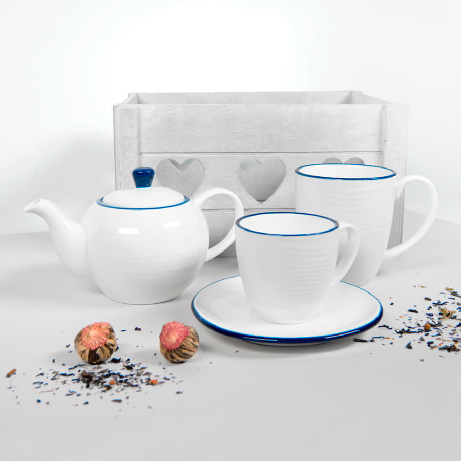 Компания «Эклектика BY» осуществляет нанесение логотипа на сувенирную продукцию: Чайник и чайная пара SEAWAVE в упаковке, 200мл и 500мл, фарфор. Арт. 261997