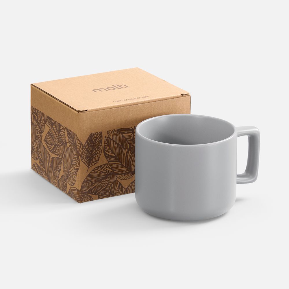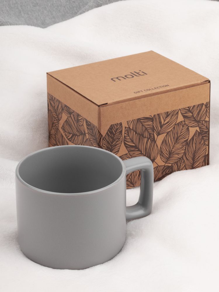 Чашка Jumbo в коробке матовая, светло-серая с логотипом компании - отличный способ заявить вашу корпоративную идентичность.