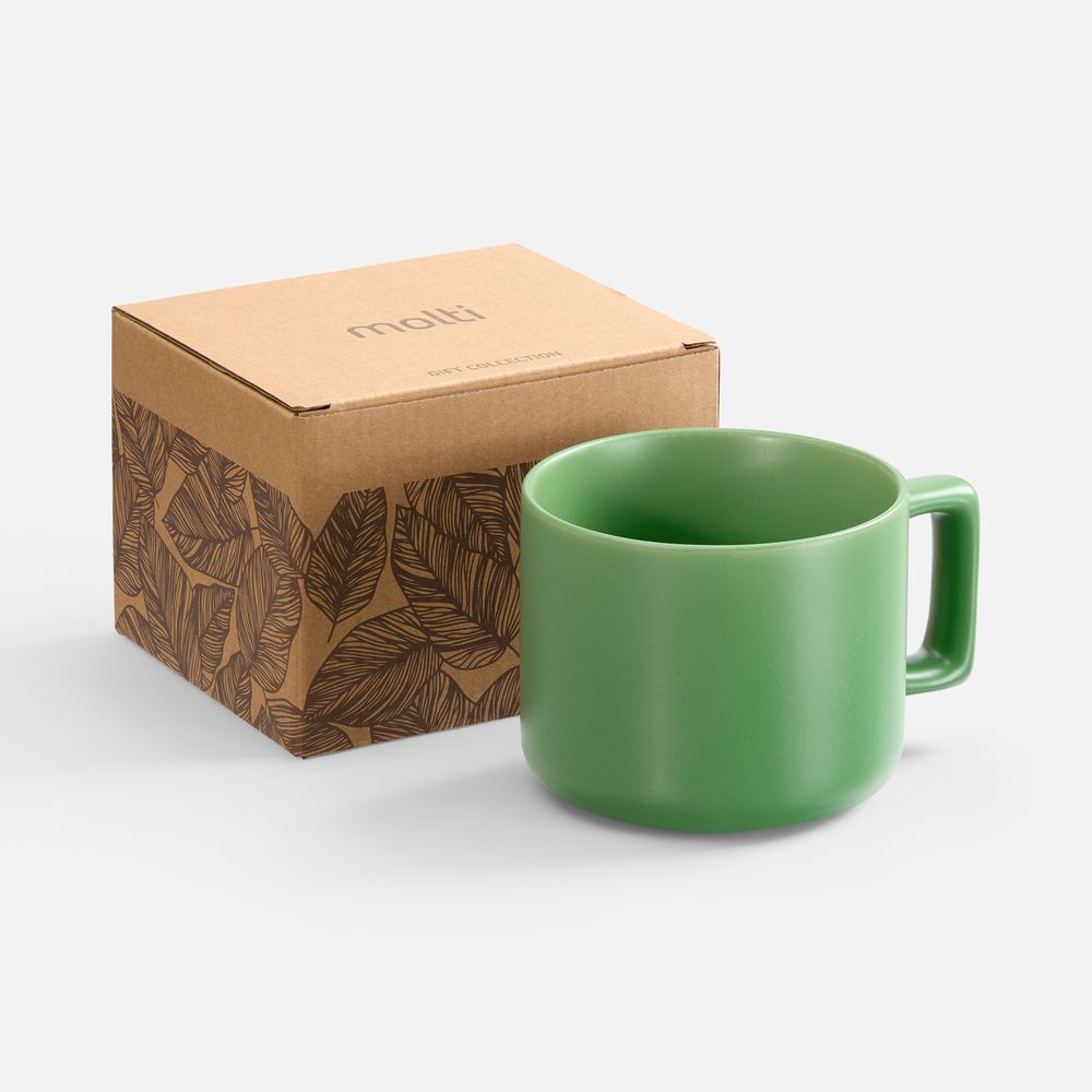 Чашка Jumbo в коробке матовая, зеленая с логотипом компании - отличный способ заявить вашу корпоративную идентичность.