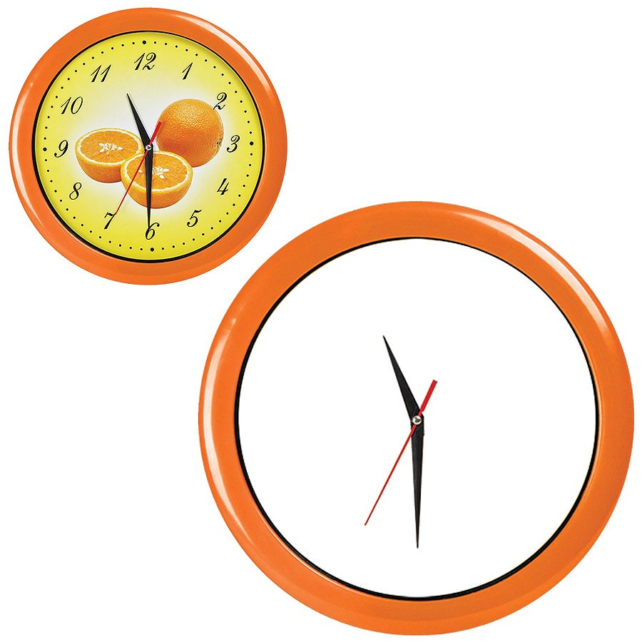 Компания «Эклектика BY» осуществляет нанесение логотипа на сувенирную продукцию: Часы настенные "ПРОМО" разборные ; оранжевый, D28,5 см; пластик. Арт. 258139