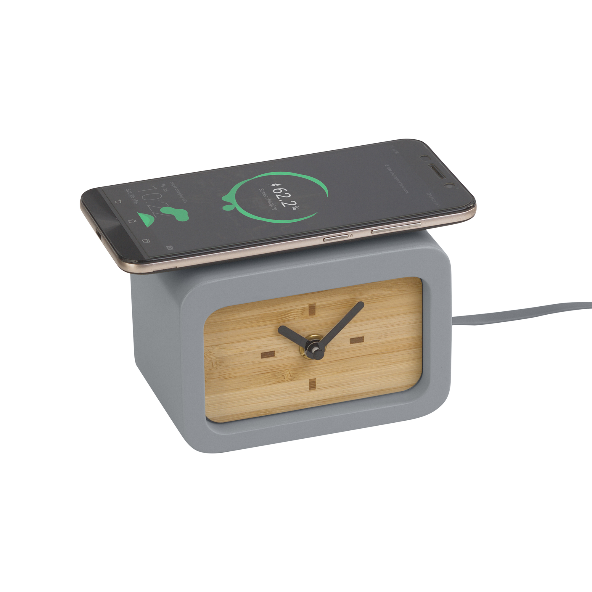 Часы "Stonehenge" с беспроводным зарядным устройством, камень/бамбук с логотипом компании - отличный способ заявить вашу корпоративную идентичность.