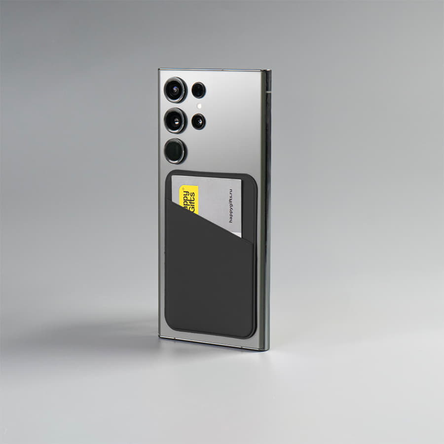 Компания «Эклектика BY» осуществляет нанесение логотипа на сувенирную продукцию: Чехол для карты на телефон Simply, самоклеящийся 65 х 97 мм, черный, PU . Арт. 258245