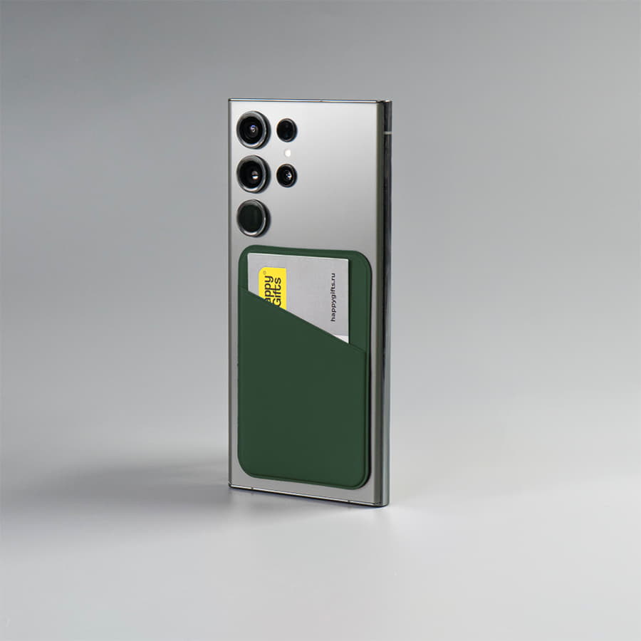 Компания «Эклектика BY» осуществляет нанесение логотипа на сувенирную продукцию: Чехол для карты на телефон Simply, самоклеящийся 65 х 97 мм, зеленый, PU . Арт. 258242
