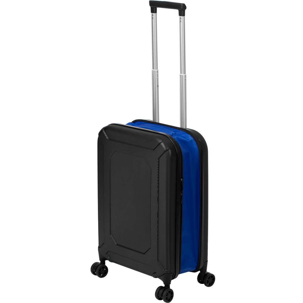 Чемодан Platta, черный с синим с логотипом компании - отличный способ заявить вашу корпоративную идентичность.
