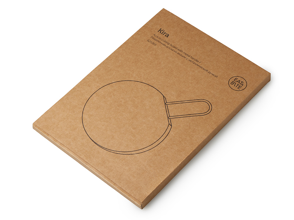 Компания «Эклектика BY» осуществляет нанесение логотипа на сувенирную продукцию: Деревянная круглая доска из акации с металлической ручкой Кира. Арт. 459809