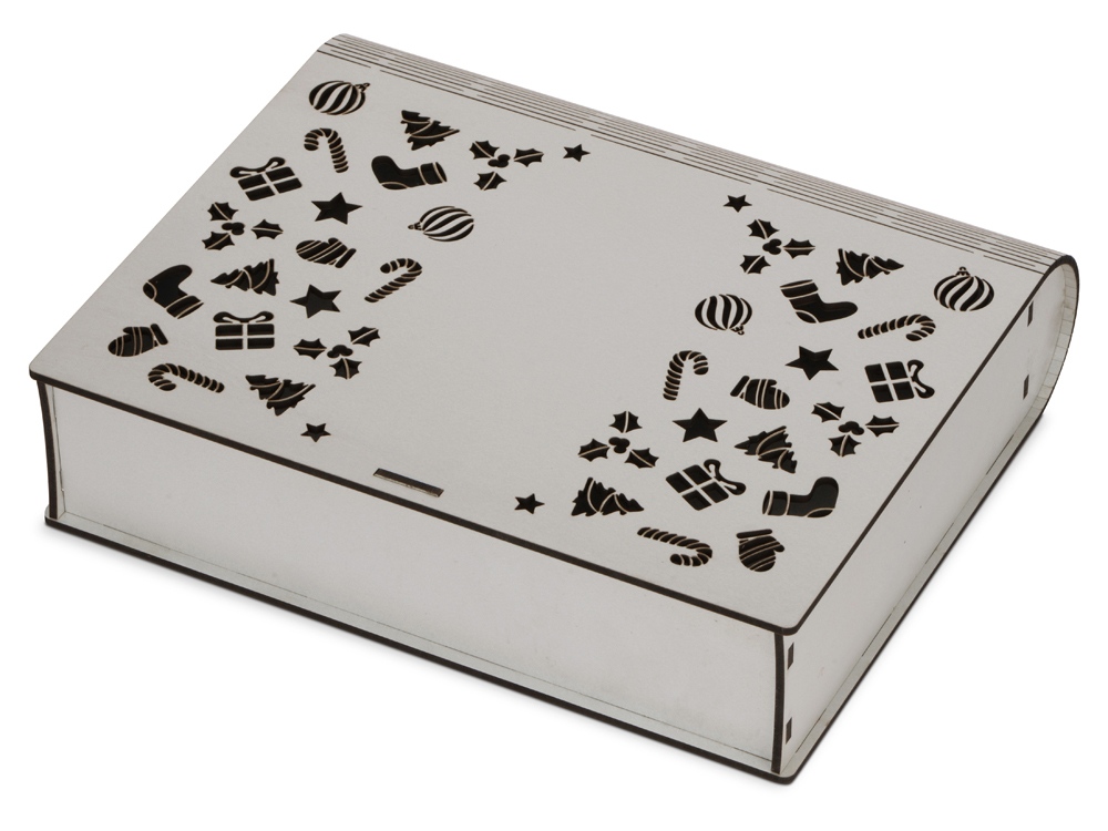 Подарочная коробка в виде книги с новогодним дизайном удивит получателя подарка своим запоминающимся дизайном.