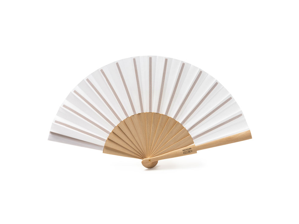 Деревянный веер MILOS, натуральный/белый с логотипом компании - отличный способ заявить вашу корпоративную идентичность.