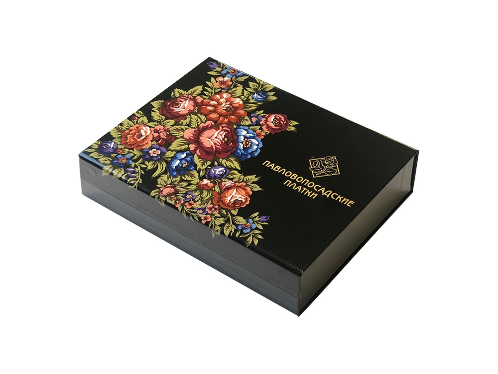 Главная ->Корпоративные подарки и рекламные сувениры на складе -> Подарочные упаковки -> Подарочная упаковка -> Дизайнерская картонная коробка к Павлопосадским платкам