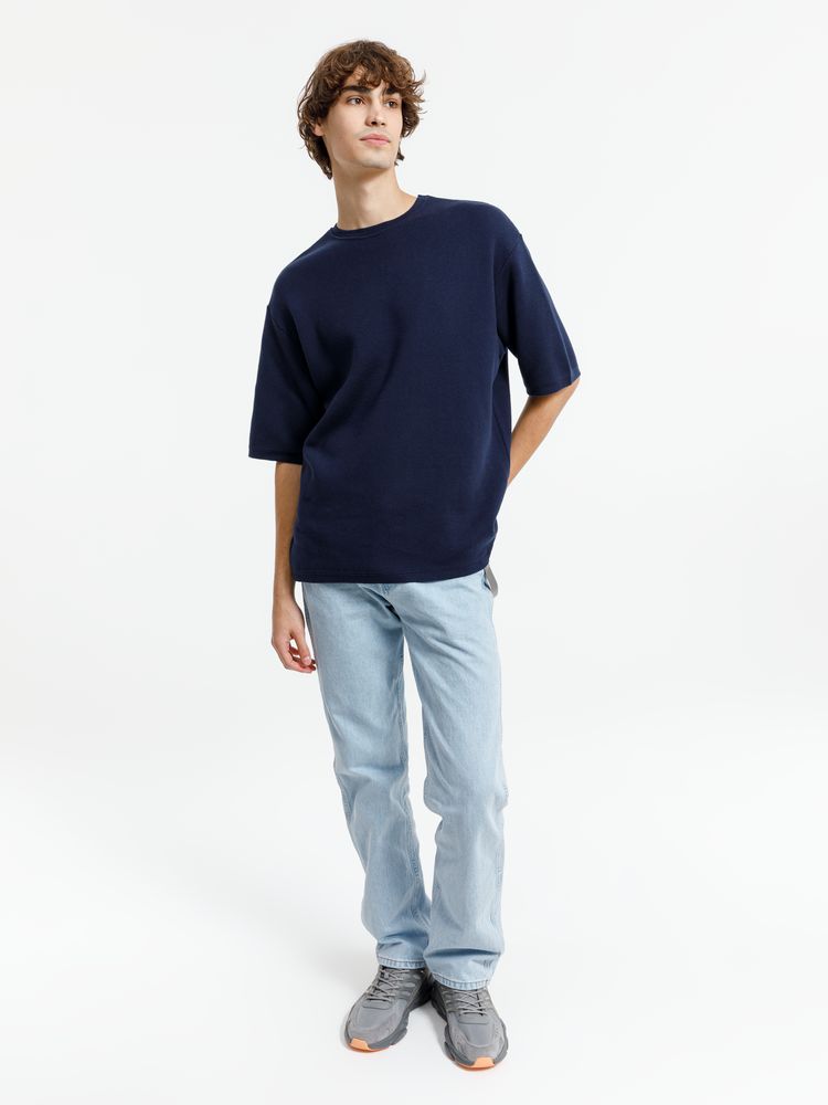 Джемпер с коротким рукавом Siluetti Volumica, темно-синий, размер M/L с логотипом компании - отличный способ заявить вашу корпоративную идентичность.