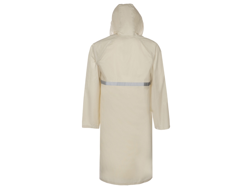 Длинный дождевик Lanai из полиэстера со светоотражающей тесьмой, молочный с логотипом компании - отличный способ заявить вашу корпоративную идентичность.