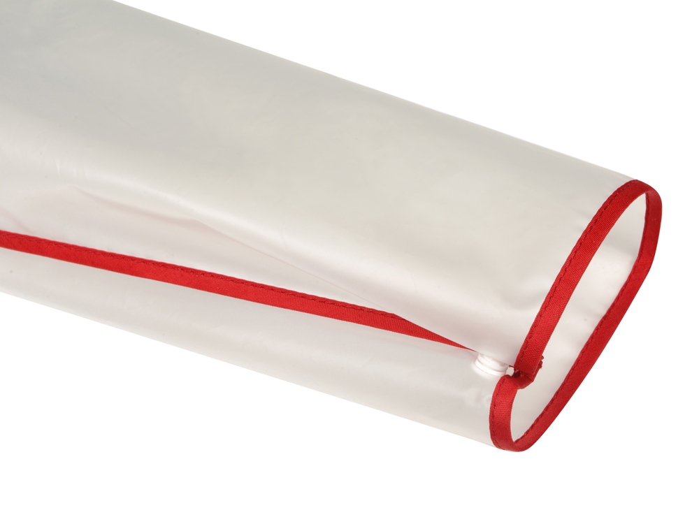 Дождевик Providence, прозрачный/красный с чехлом с логотипом компании - отличный способ заявить вашу корпоративную идентичность.