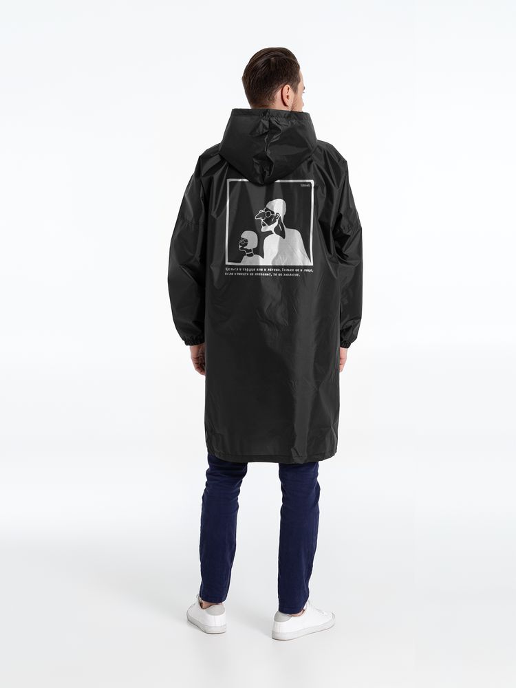 Главная ->Корпоративные подарки и рекламные сувениры на складе -> Promo одежда и аксессуары -> Плащи-дождевики с принтом -> Дождевик «Леон», черный, размер XXL